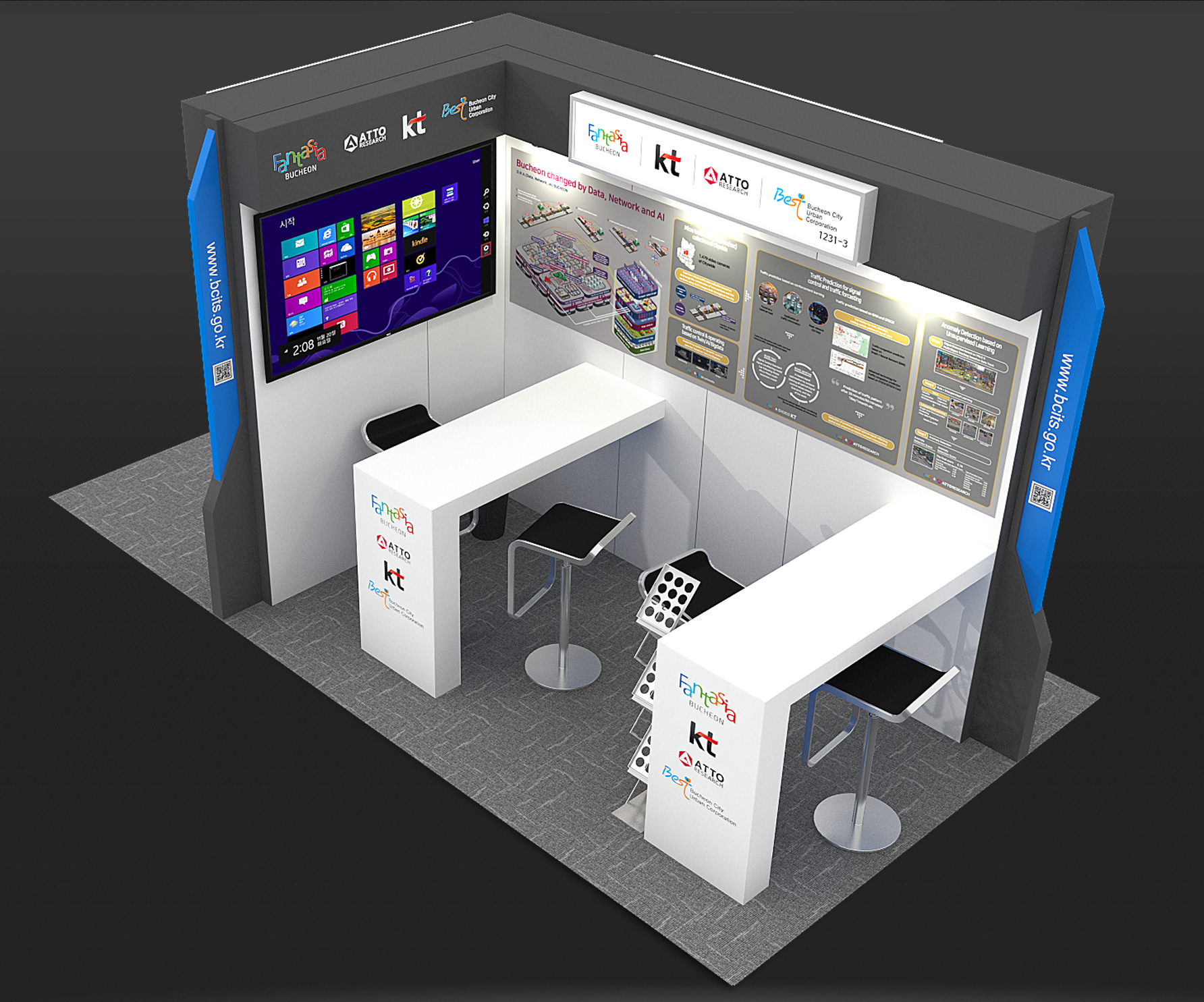 KT는 이 자리에서 융합기술원에서 자체 개발한 ‘KT Road Twin’을 부천시의 실제 교통 환경에 적용한 실증 사례와 신호 시스템을 최적화해 도심 내 교차로 통과 교통량이 효과적으로 개선된 실증 결과를 전시한다. KT Road Twin은 광역 교통 네트워크의 교통흐름을 최적화하는 솔루션이다.