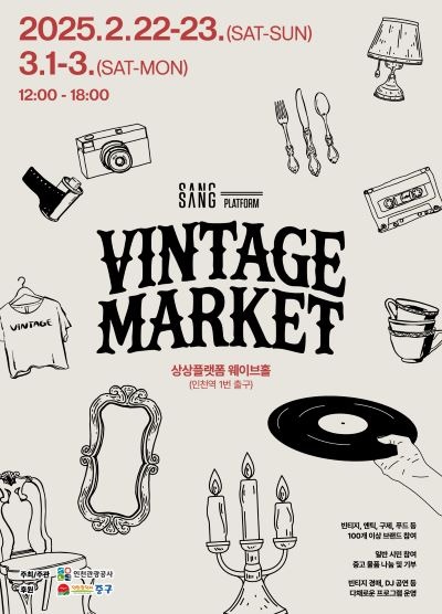 인천관광공사는 2월 22일부터 23일, 3월 1일부터 3일까지 상상플랫폼 웨이브홀에서 아날로그 감성의 매력과 ESG 실천을 주제로 한 “2025 상플 빈티지 마켓”을 개최한다고 18일 밝혔다.
