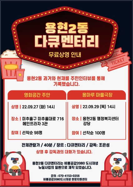 인천도시공사(iH) 비룡공감2080 도시재생현장지원센터가 미추홀구 용현2동의 과거와 현재를 주민인터뷰를 통해 기록한 '용현2동 다큐멘터리'를 무료로 상영한다.