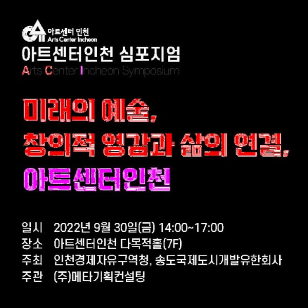 인천경제자유구역청은 오는 30일 오후 2시 아트센터인천 7층 다목적홀에서 NSIC(송도국제도시개발유한회사)와 공동으로 아트센터인천 2단계 건립을 위한 온·오프라인 심포지엄을 개최한다고 밝혔다.