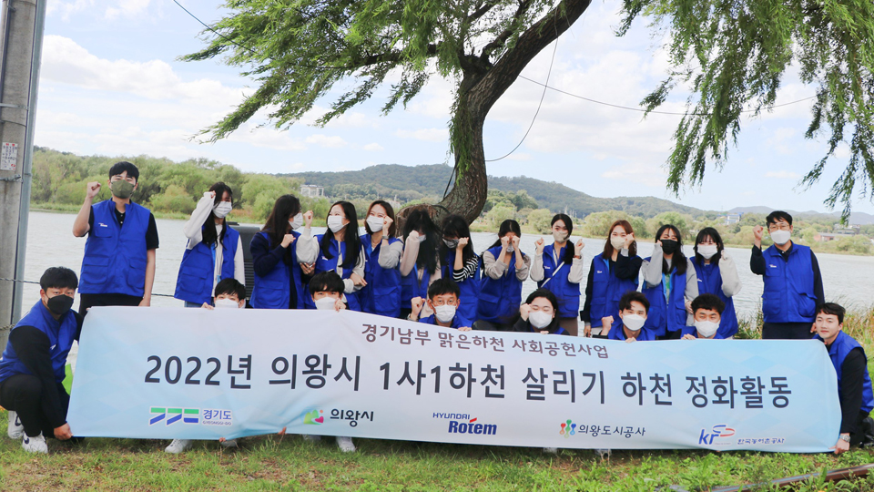 이번 활동은 경기도수자원본부에서 주관하는 ‘경기남부 맑은하천 사회공헌 사업’과 의왕시에서 시행 중인 ‘1사 1하천 살리기 하천 정화활동’의 일환으로 진행됐다. 관내 안정적인 용수 공급을 위해 지역 하천 수질 관리에 민관이 협력하고자 마련된 것으로 현대로템을 비롯해 환경정화 취지에 공감한 의왕시도시공사, 한국농어촌공사 등 관내 기관 임직원들도 이날 활동에 함께 참여했다.
