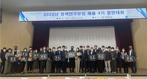 인천시(시장 유정복)는 28일 시청 대회의실에서 인천시 정책연구모임 '혜윰' 경연대회를 개최했다고 밝혔다. 순 우리말로 '생각'이라는 뜻의 '혜윰'은 인천시 공무원들로 구성된 자율적, 자발적인 정책연구모임이다.