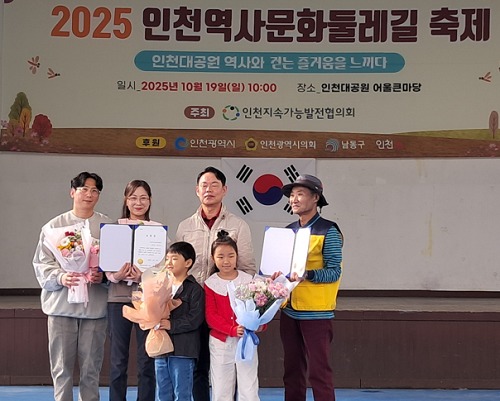 이날 행사에서는 인천둘레길 조성과 활성화에 기여한 시민에 대한 유공자 표창식도 진행됐다. 10년 이상 둘레지기(둘레길 안내자)로 활동한 채화석 씨, 그리고 청소년 대상 ‘둘레길 함께 걷기’를 꾸준히 운영해 온 사회복지법인 ‘풍성하게’의 이형린 목사가 ‘둘레길 활성화 유공 표창’을 수상했다.