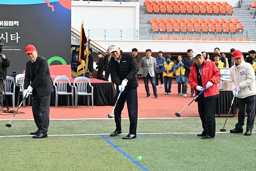 이어 오 시장은 고광선 회장을 비롯한 주요 내빈들과 ‘시니어 올림픽’ 시작을 알리는 그라운드골프 시타를 했다.