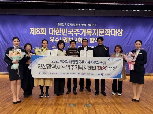 인천시 광역주거복지센터는 지난 20일 인천 시민의 주거복지 향상에 기여한 공로로 ‘제8회 대한민국 주거복지문화대상’ 단체 부문 대상과 함께 국회 상임위 ‘문화체육관광위원장상’을 동시에 수상했다고 밝혔다.