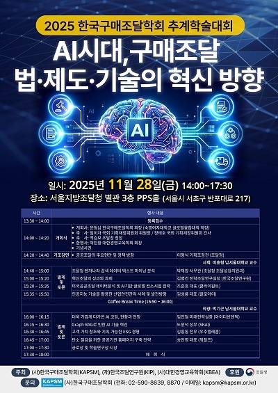 한국구매조달학회, AI 시대 공공조달 혁신을 논의하는 ‘2025 추계학술대회’ 11월 28일 개최