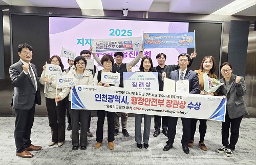 인천시는 지난 12월 1일 행정안전부에서 주최한‘2025년 지자체 외국인주민 지원 우수사례 경진대회’에서 ‘외국인근로자 정착 GPS Governance,Policy&Safety!’프로그램으로 장려상을 수상했다고 밝혔다.