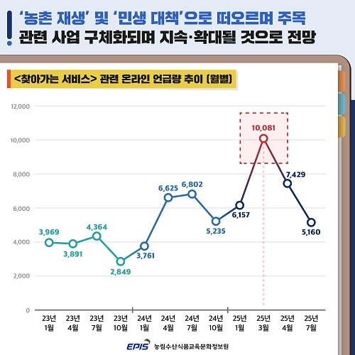 농정원 윤동진 원장은 “찾아가는 서비스는 단순한 편의 제공을 넘어 농촌 주민들의 삶의 질 향상에 실질적으로 기여하고 있다는 점에서 의미가 크다”며 “앞으로도 현장의 수요와 정책 효과를 면밀히 분석하는 일을 확대하겠다”고 말했다.