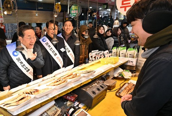 이어 물가안정 캠페인에 참여해 온누리상품권으로 정육·생선구이·전·한과·떡 등 새해맞이 물품을 직접 구매하고 전통시장 이용 활성화에 힘을 보탰다. 이날 구매한 물품은 행사 종료 후 지역 복지관에 전달될 예정이다.