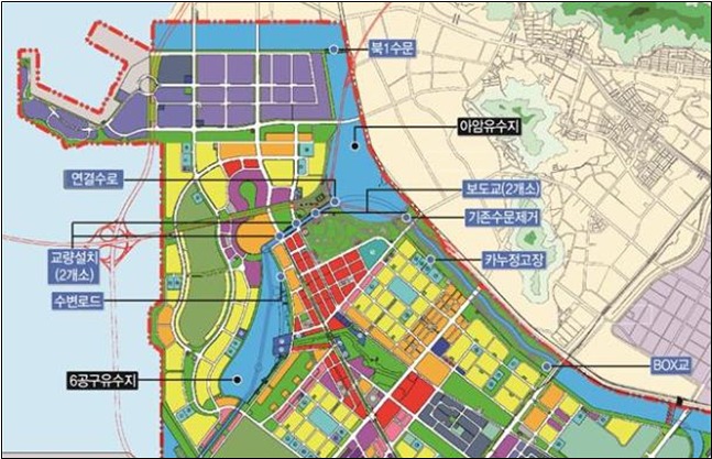 - 6공구 유수지 준설 완료, 6공구~아암 호수 연결수로 개설 및 수변로드 조성 가시화