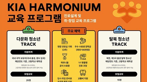 기아가 19일(월)부터 다문화 청소년의 안정적인 사회 진출을 지원하는 ‘하모니움 교육 프로그램’ 3기 참여자를 모집한다고 밝혔다.