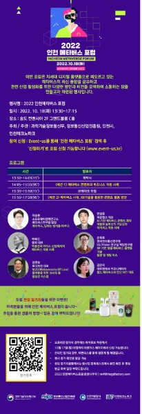인천광역시(시장 유정복)와 인천테크노파크(인천TP)는 오는 18일 송도컨벤시아 그랜드볼룸에서 ‘2022 인천메타버스포럼’이 개최한다고 밝혔다.