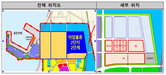 이번 공고는 아암물류2단지 2단계 부지 59만㎡ 중 25만㎡에 해당하는 A구역 7개 부지를 대상으로, 초소형 부지 4개(43천㎡), 소형 부지 1개(24천㎡), 중형 부지 1개(54천㎡), 대형 부지 1개(126천㎡)를 공급하며,
