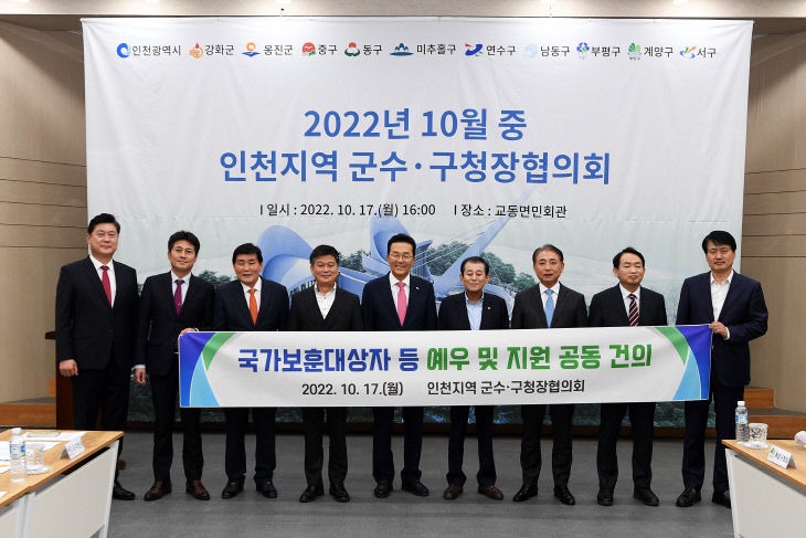 인천시 남동구는 17일 강화군에서 열린 인천 군수·구청장협의회에서 국가보훈대상자 등 예우 및 지원을 위한 법률 개정과 보훈 예우 수당 지역 간 격차 해소를 정부에 건의했다고 18일 밝혔다.