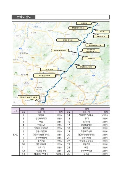 포천시는 오는 3월 4일부터 경기도 광역 공공버스 신규 노선인 3700번(도평리-별내역)을 정식 운행한다고 밝혔다.