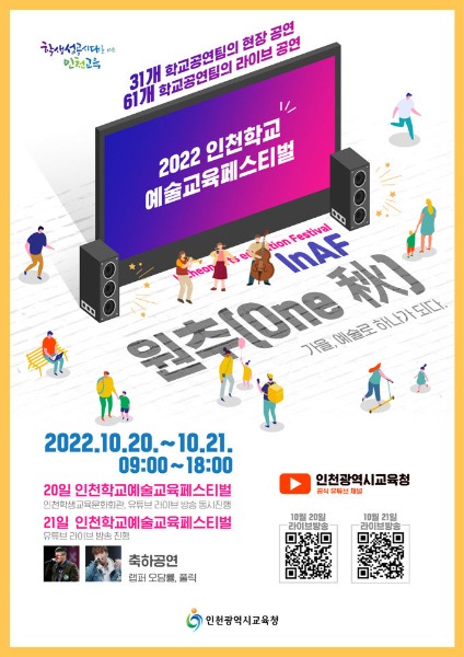 인천시교육청(교육감 도성훈)은 '2022 인천학교예술교육페스티벌(InAF)'을 20~21일 이틀간 개최한다고 밝혔다.