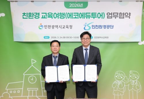 인천환경공단(이사장 김성훈)과 인천시교육청(교육감 도성훈)은 24일‘친환경 교육여행(에코에듀투어)’운영 및 활성화를 위한 업무협약을 체결했다.