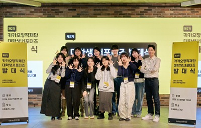 카카오엔터테인먼트(공동대표 고정희, 장윤중)의 국내 문화 콘텐츠 창작자를 위한 카카오창작재단이 재단과 창작자, 대중을 잇는 ‘카카오창작재단 대학생 서포터즈 2기 발대식’을 개최하고 2026년 서포터즈 공식 출범을 알렸다. 26대1의 지원 경쟁을 뚫고 선발된 10명의 대학생 서포터즈들은 올 한해 국내 창작 생태계를 연결하는 허브로 활동할 예정이다.
