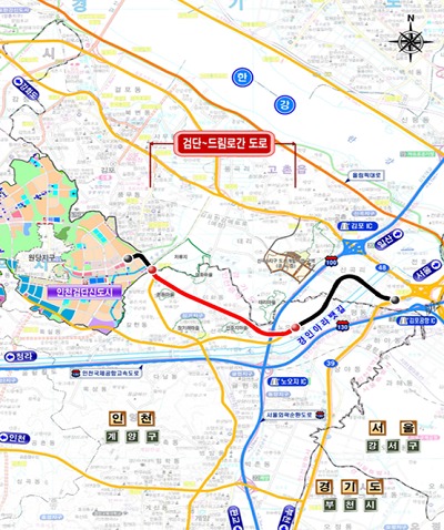 인천시와 한국토지주택공사(LH)는 검단지역 광역교통개선을 위해 추진해 온 검단∼드림로간 연결도로를 4월8일 오후 2시에 개통한다고 밝혔다.