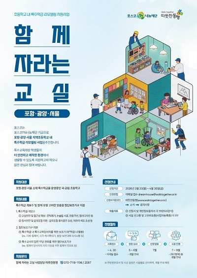 - 4월 30일까지 특수교육 환경 리모델링 사업 신청 접수…사업장 소재 포항·광양·서울 국·공립 초등학교 대상