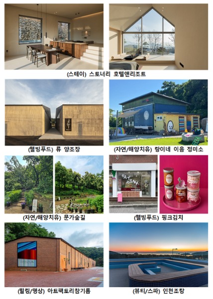 올해 신규 웰니스 관광지로는 △류양조장(강화, 웰빙푸드) △스토너리 호텔앤리조트(강화, 스테이) △랑이네 이음 정미소(강화, 자연·해양치유) △㈜농업회사법인 문가숲길(남동구, 자연·해양치유) △아트팩토리참기름 강화(강화, 힐링·명상) 등 5곳이 선정됐다. 이들 관광지는 역사성과 자연경관, 도심 속 숲 등 지역 자원을 활용한 다양한 체험 프로그램을 갖춘 것이 특징이다.