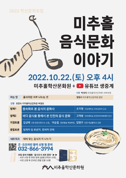 포럼은 미추홀학산문화원 유튜브 채널에서 생중계되며 자세한 사항은 문화원 홈페이지를 통해 확인할 수 있다.