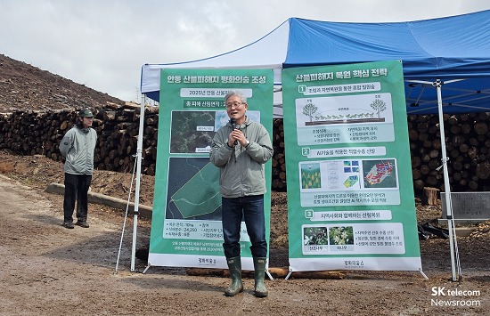 SK텔레콤은 유한킴벌리, 산림생태계 복원 전문 NGO ‘평화의숲’과 함께 산불 피해를 입은 안동 지역의 산림 복원 프로젝트를 추진하고 있다. 지난해 9월 관련 협약을 맺고, 향후 5년간 총 1만 그루의 나무를 심는 것을 목표로 장기적인 복원 사업을 이어가고 있다.