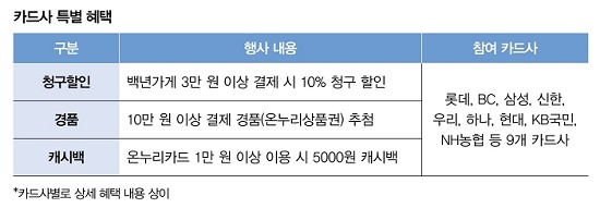 디지털온누리상품권 할인율을 5월 1일부터 5일까지 한시적으로 기존 7%에서 10%로 상향하고 9개 카드사를 통해 백년가게·전통시장·온누리가맹점 결제 시 10% 청구할인을 제공한다.