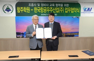 KAI(한국항공우주산업(주))는 학교법인 함주학원(이하 함주학원)과 13일 조종사 및 정비사 교육 협력을 위해 업무협력 합의서(MOA)를 체결했다고 밝혔다.