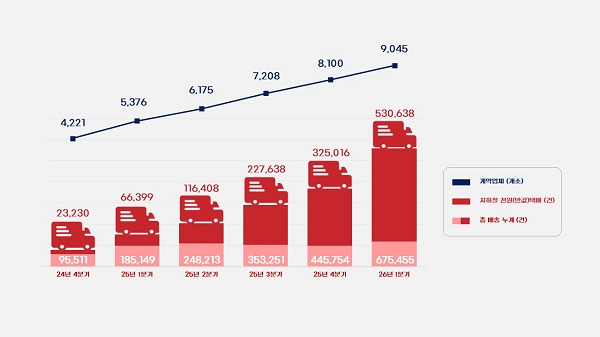 또한, 2025년 상반기 월평균 7만 2천 건 수준이던 배송량은 지원 확대 이후 하반기 13만 3천 건으로 무려 84% 급증했다. 사업 참여 업체는 4,221개에서 8,947개로 1년 사이 2배 이상 늘어났다.