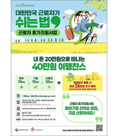 문화체육관광부는 법정 공휴일 지정 후 첫 '노동절'을 맞아 한국관광공사와 함께 노동자 휴가지원 사업인 '반값휴가' 사업을 확대한다고 27일 전했다.