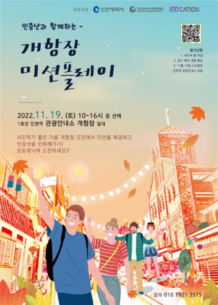 인천광역시(시장 유정복)는 인천광역시관광협의회와 관광안내소 운영 활성화를 위해 11월부터 12월까지 인천역 관광안내소와 인천종합관광안내소에서 다양한 행사를 개최한다고 밝혔다.