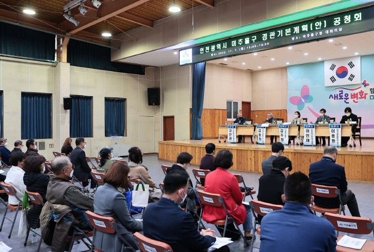 인천시 미추홀구(구청장 이영훈)는 7일 구청 대회의실에서 인천시 미추홀구 경관기본계획 수립을 위한 공청회를 개최했다.