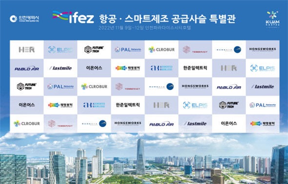 인천경제청은 UAM 관련 항공·스마트 제조 분야 제품·서비스 전시, 비즈니스 파트너 구축, 상호 정보교류 등을 위해 이번에 특별관을 운영하게 됐다. 이와관련, 인천경제청은 특별관 운영을 위해 항공우주 분야 인천 지역 대표 혁신지원기관인 항공우주산학융합원과 인천스타트업파크 인스타II에서 스타트업을 육성 중인 신한 스퀘어브릿지 인천 등의 추천과 협력을 통해 ㈜태영광학, 와우미래기술, ㈜테서렉트, ㈜루다시스, 라스트마일 등 17개 기업을 사전에 선정했다.