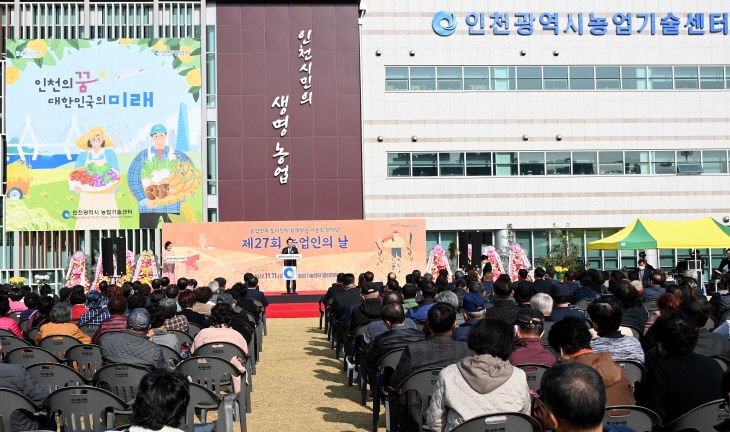 인천시는 11일 '제27회 농업인의 날'을 맞아 시 농업기술센터 열린마당에서 농업인의 날 기념식 행사를 개최했다고 밝혔다.