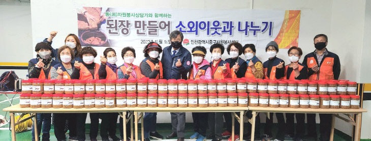 인천시 중구자원봉사센터(이하 센터)가 16일 洞자원봉사센터 상담가와 함께하는 특색사업 '된장 나눔 활동'을 가졌다.