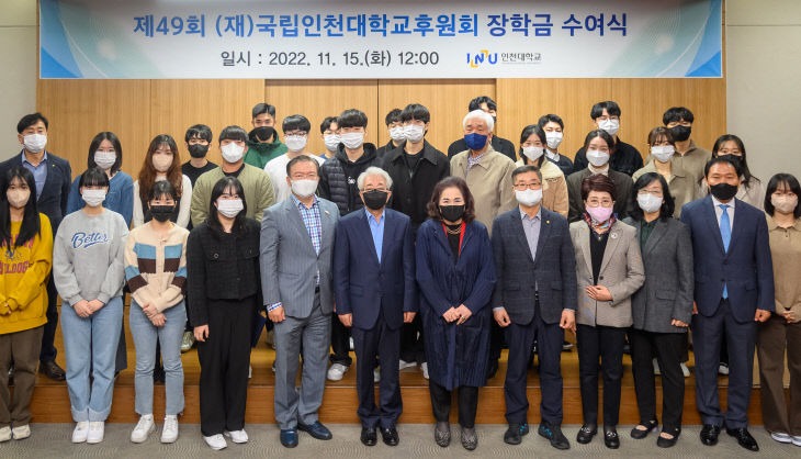 재단법인 국립인천대학교후원회(이사장 박영복)는 15일 인천대 송도캠퍼스 교수회관 3층 대회의실에서 제49회 2022학년도 장학금 수여식을 가졌다.