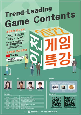 인천시는 오는 26일 오후 2시 틈 문화창작지대에서 게임콘텐츠에 관심 있는 청소년을 포함한 시민 등을 대상으로 '2022 인천 게임특강'을 개최한다고 밝혔다.