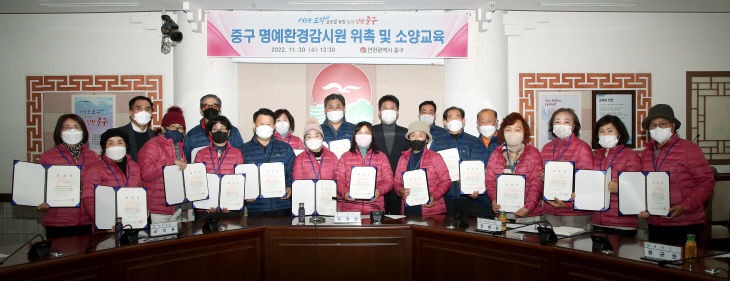 인천시 중구는 지난달 30일 제1청 서별관 회의실에서 환경보전 의식과 봉사정신이 투철한 지역주민 22명을 명예환경감시원으로 위촉했다고 1일 밝혔다.