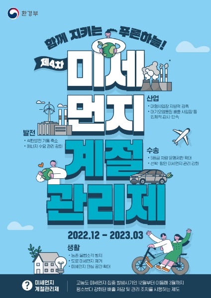 미세먼지 계절 관리제란 시민 건강 보호를 위해 평상시보다 한층 강화된 미세먼지 저감 정책을 시행하는 집중 관리 대책으로, 수송·산업·생활·건강 보호· 정보제공 총 5개 분야 16개 이행과제를 집중적으로 추진한다.