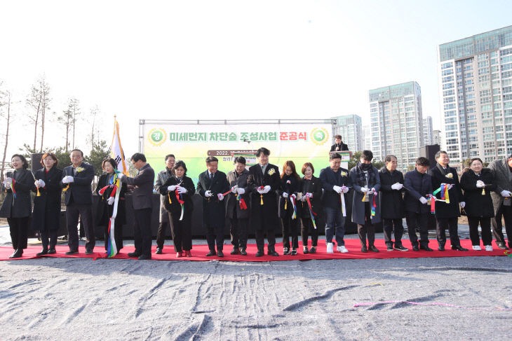 인천시 서구는 최근 미세먼지, 분진을 차단하는 축구장 7개 크기의 미세먼지 차단 숲 조성을 마무리하고 7일 준공식을 개최했다.