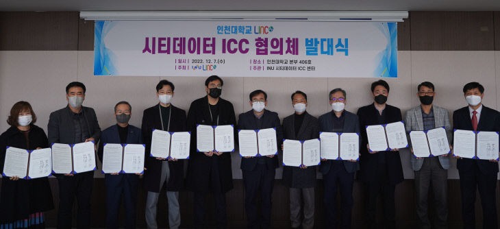 인천대학교 LINC사업단은 7일 대학 본관 4층에서 3단계 산학연협력 선도대학 육성사업(LINC3.0)의 산학연관 협력 네트워크 구축을 위해 시티데이터ICC 협의체 발대식 및 산학협력 업무협약식을 개최했다고 밝혔다.