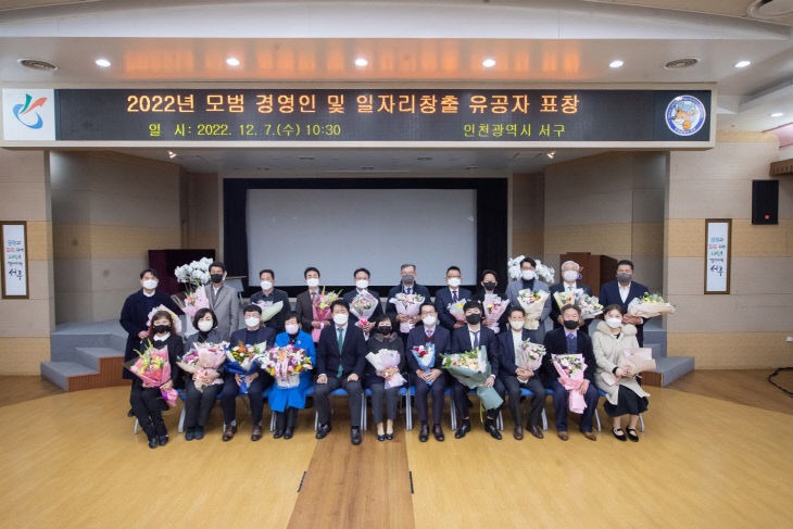 인천시 서구는 7일 '자랑스러운 서구 기업인상' 12명, '4분기 우수기업인상'에 8명, '일자리 창출 유공 표창'에 4명 등 수상자 24명을 선정·시상했다고 밝혔다.