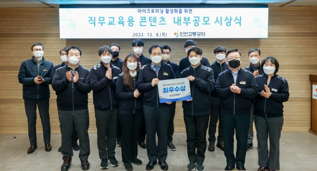 인천교통공사(사장 김성완)는 8일 본사에서 마이크로러닝 활성화를 위한 직무교육용 콘텐츠 제작 내부공모 시상식을 진행했다고 밝혔다.