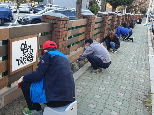 한편 신동아1,2차아파트 주민들의 주도로 추진된 ‘함께 걷고 싶은 길 조성사업’은 학익소로 63번길 골목을 대상으로 신동아1,2차아파트의 철재 울타리에 합성 목재 가림막과 희망을 주는 감성 문구 캘리그라피 액자 10개를 설치해 노후화된 철재 울타리를 차폐하고 깨끗한 가로 환경을 만들어 함께 걷고 싶은 골목을 조성했다. 특히 울타리 하단의 벽화 작업은 벽화 봉사 작가팀, 주민, 동 행정복지센터 직원들이 함께 작업에 참여해 마을 공동체 활성화 도모에 큰 의미를 부여했다.