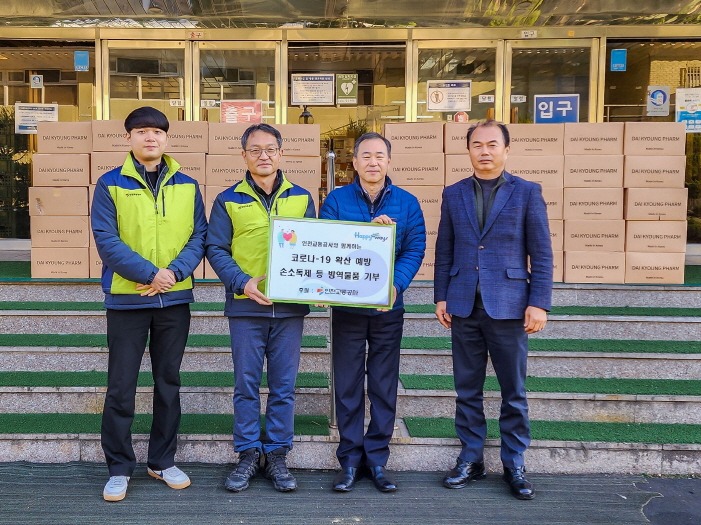 인천교통공사(사장 김성완)는 동절기 코로나19 재유행에 따라 코로나19 감염에 취약한 계층을 위해 30일 인천사회복지공동모금회를 통해 은혜의 집(인천 서구)에 방역물품(손소독제 및 손세정제 1,260개)을 기부했다고 밝혔다.