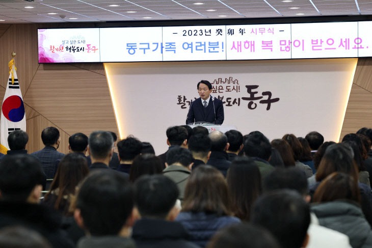 인천시 동구는 2일 구청 소나무홀에서 시무식을 갖고 2023년 힘찬 출발을 알렸다.