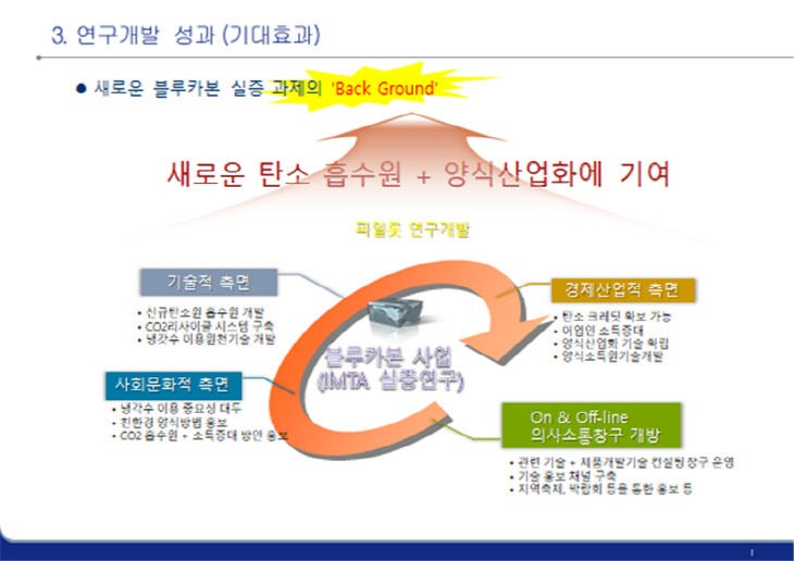 최경주 인천수산자원연구소 소장은 "이번 과제를 발판으로 고부가가치 어종의 양식기술을 개발해 어업인들의 소득증대는 물론 온실가스 흡수원 개발 및 확대로 기후변화에 대처할 수 있는 기반이 조성될 것이다"라며 "더불어 해양생태계 보전을 위한 연구도 병행해 나가겠다"고 말했다.
