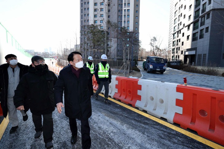 또 숭인지하차도 공사현장과 최근 개설된 광역시도 3호선을 방문, 송림초교 등·하교시 안전사고 방지 대책을 점검했다. 광역시도 3호선은 지난해 8월 송림초교 주변 입주민의 원활한 진·출입을 위해 구역 동측 출구와 송림로를 이어주는 연결도로 설치 요구에 따라 개설됐다.