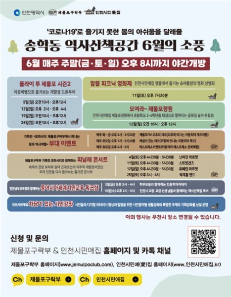 인천시, 중구 송학동 역사산책공간에서 '송학동 역사산책공간 6월의 소풍'을 내달 3일부터 26일까지 운영한다고 29일 밝혔다.